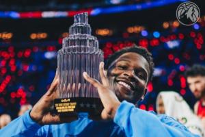 加上前两场循环赛(各12分钟),爱德华兹总计得到32分9篮板3助攻1抢断,当选本届全明星赛MVP,夺得科比·布莱恩特杯!