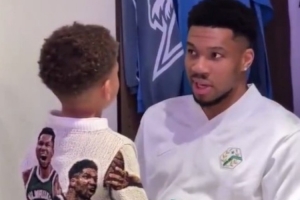 字母哥教导儿子:“你会成为年度最佳新秀,然后你会成为全明星,然后你会在比赛中隔扣文班!”