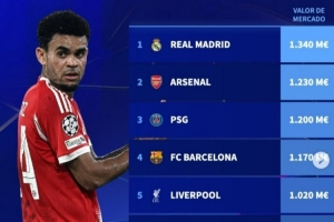 体育资讯3月19日讯 本赛季欧冠8强全部产生,德转也列出8强球队身价榜,具体如下: