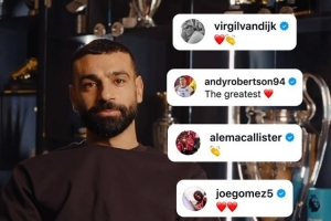 利物浦官方更新社媒动态,晒出队友们社媒留言致敬萨拉赫的合集。范戴克、罗伯逊、麦卡利斯特、乔·戈麦斯、远藤航、科纳特、维尔茨、柯蒂斯·琼斯、布拉德利、恩古莫哈、马马尔达什维利、埃基蒂克、赫拉芬贝赫都在社媒留言致敬。