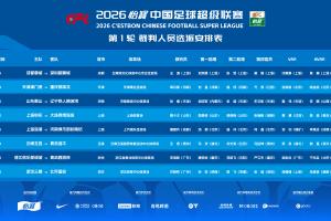 体育资讯03月06日讯 北京时间3月6日19:35,2026中超揭幕战成都蓉城坐镇主场迎战深圳新鹏城。官方消息,王迪执法本场比赛。与体育资讯报道一致